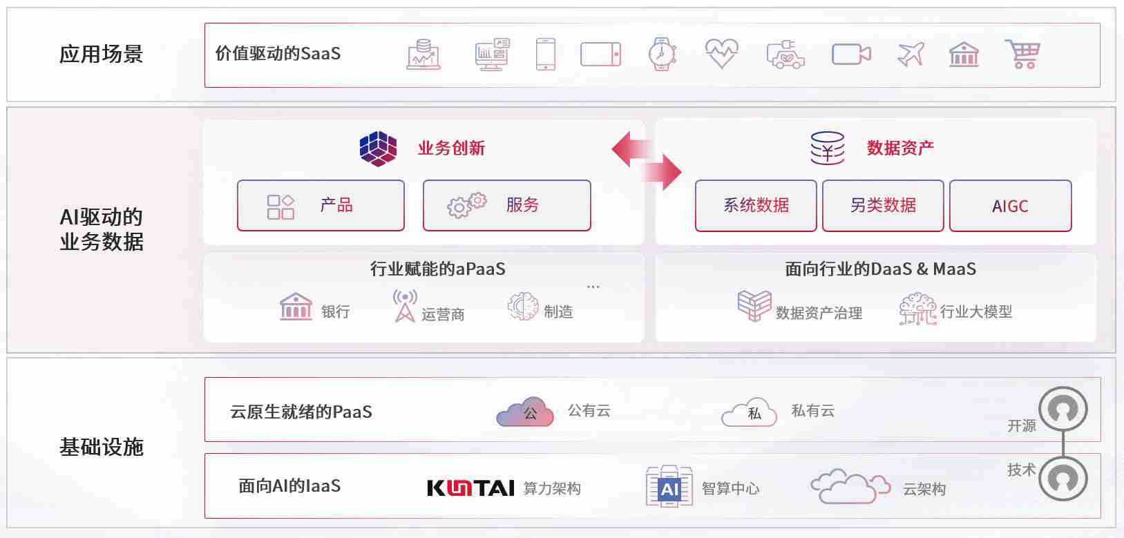 数字时代,,围绕企业数字化转型的关键要素,,,,GGPAY钱包数码开创性的提出数云融合战略和技术体系框架,,着力在云原生、、、数字原生、、AI原生和信创产业上架构产品和服务能力,,为处在不同数字化转型阶段的快消零售、、、汽车、、、、金融、、、医疗、、、政企、、、教育、、、运营商等行业客户提供泛在的敏捷IT能力和融合的数据驱动能力,,,构建跨界融合创新的数字业务场景和新业务模式,,助力企业级客户建立面向未来的核心能力和竞争优势,,,全面推动社会的数字化、、、智能化转型升级。。